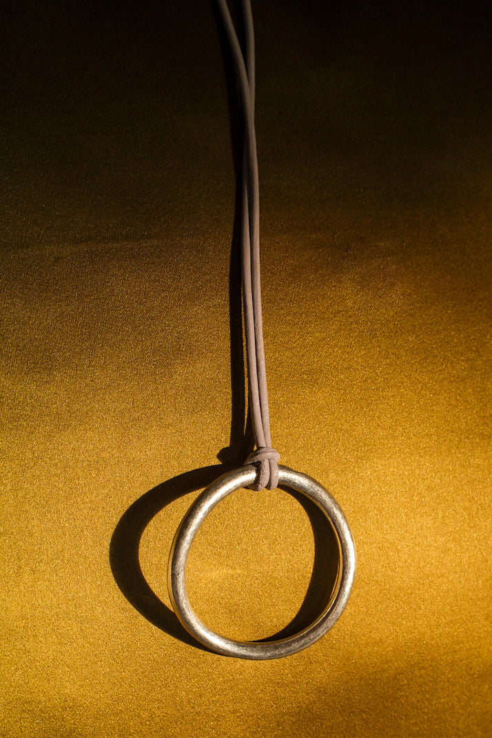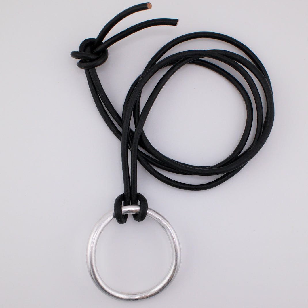 Materials: Genuine leather cord, vintage silver-plated base metal ring