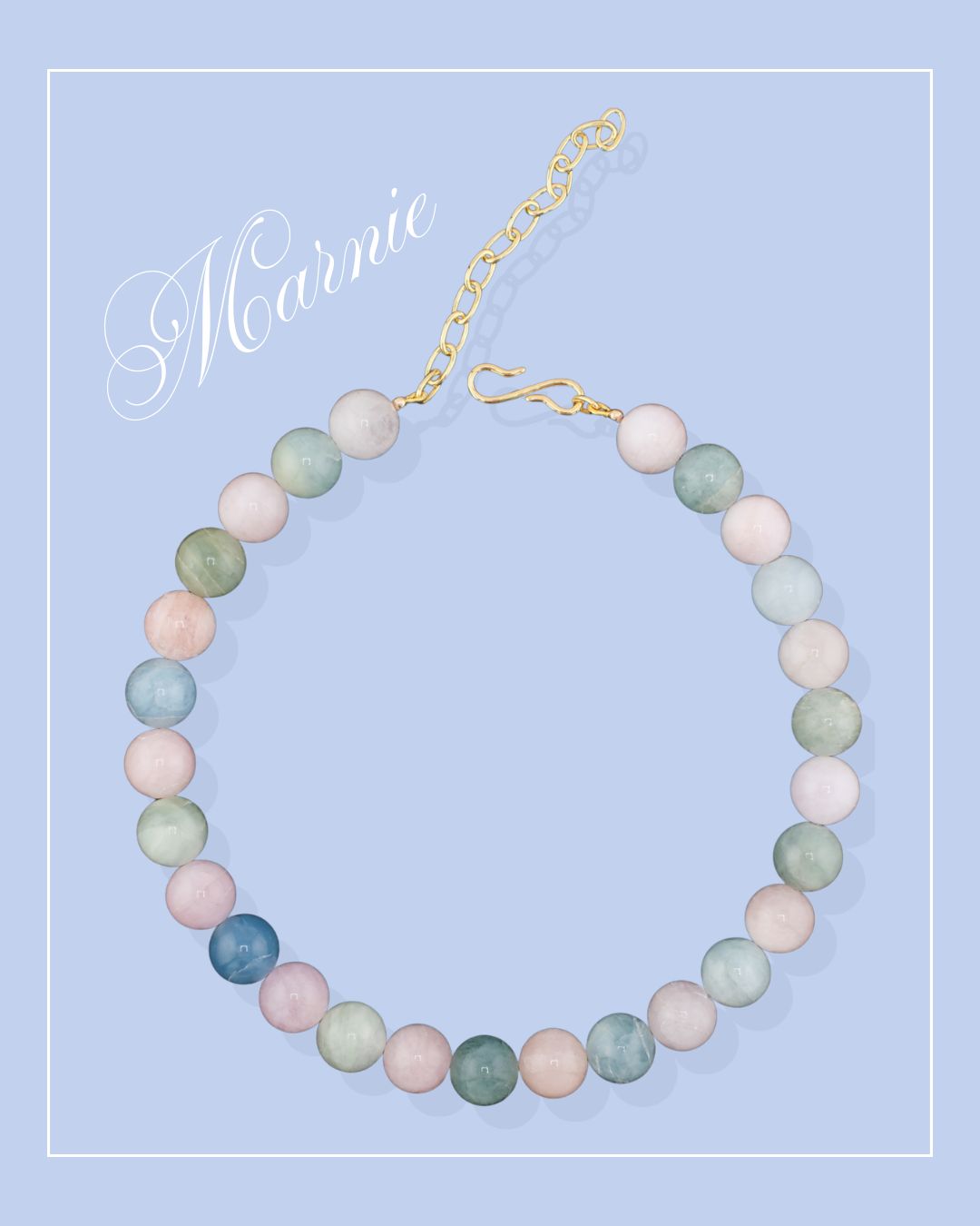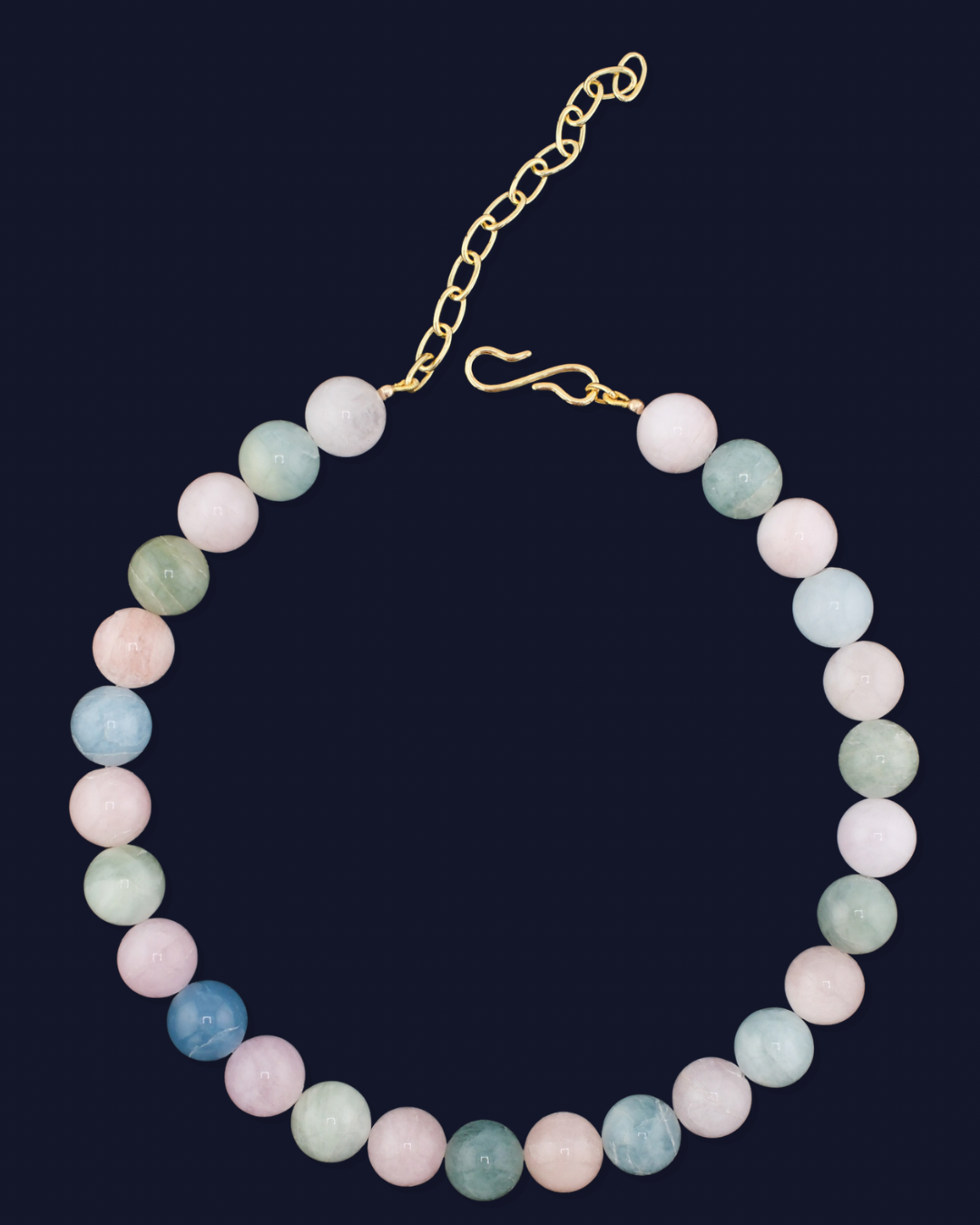 Materials: aquamarine, morganite, green beryl, gold plated brass